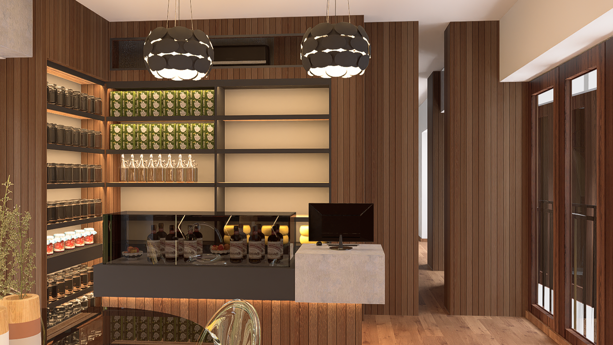 O design de interiores da loja Odemel foi cuidadosamente concebido para refletir a essência do mel, combinando requinte e funcionalidade. Cada espaço foi projetado com sofisticação, integrando elementos únicos e materiais de alta qualidade que valorizam o ambiente e criam uma experiência acolhedora. Detalhes inspirados na textura e na cor do mel transformam a loja num espaço harmonioso, onde tradição e modernidade coexistem em perfeita sintonia. Além de ser um local de venda, a zona de degustação proporciona uma experiência sensorial única, convidando os clientes a mergulhar no universo do mel com conforto e elegância.